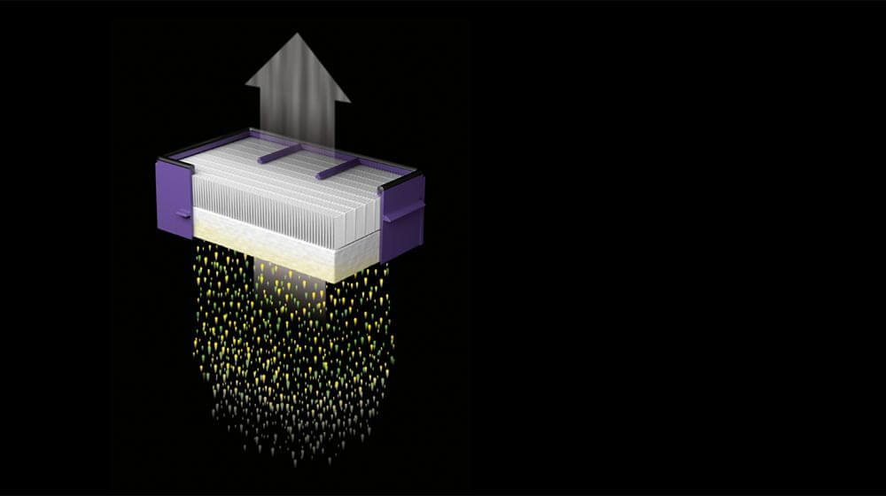 Filtrul HEPA reține particulele din aer. Are un grilaj pentru captarea fragmentelor mari, un strat căptușit pentru a capta fibrele și un strat HEPA special pentru a capta particulele de până la 0.1 microni.