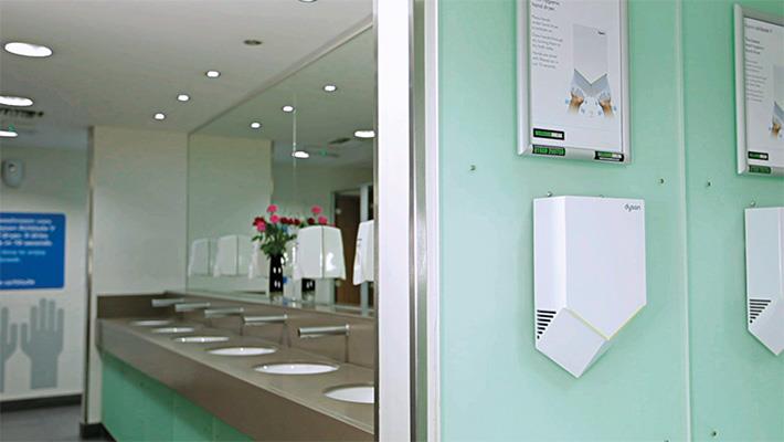 Tehnologia Airblade™ funcționează diferit. În fiecare secundă, până la 20 de litri de aer prin filtrul HEPA sunt împinși prin deschizături late de până la 0,55 mm, generând jeturi de aer cu viteze de 690 km/h care usucă mâinile igienic în doar 12 secunde.